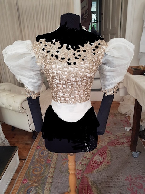 Misdik: Wir haben natürlich versucht, uns so gut wie möglich vorzubereiten. Wie kann dieser Riss an der Brust funktionieren, wie viel darf man da sehen? Wie oft muss man die Szene drehen? Es gibt zum Beispiel eine Szene, in der Sisi in den Fluss fällt und komplett schmutzig zurückkommt, die vor der Szene gedreht werden musste, in der sie mit dem gleichen Kleid aufbricht. Darum musste es das Kleid mehrfach geben. Wir haben auch viel präpariert. In der Schnürung konnte man zum Beispiel mit Klettverschlüssen einen Riss verstecken, sodass man das Kleid sowohl intakt als auch mit Riss tragen konnte. Diese Tricks braucht man, sonst hätten wir das Kleid mindestens zehnmal schneidern müssen – wir hatten nur drei.