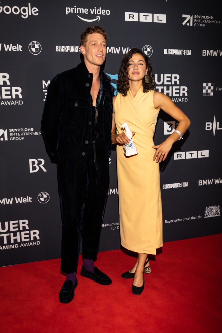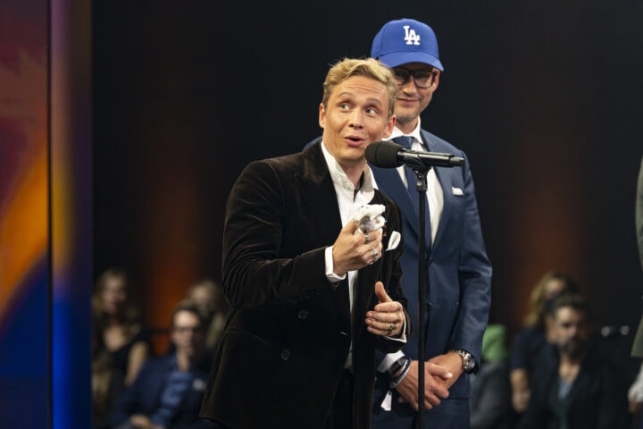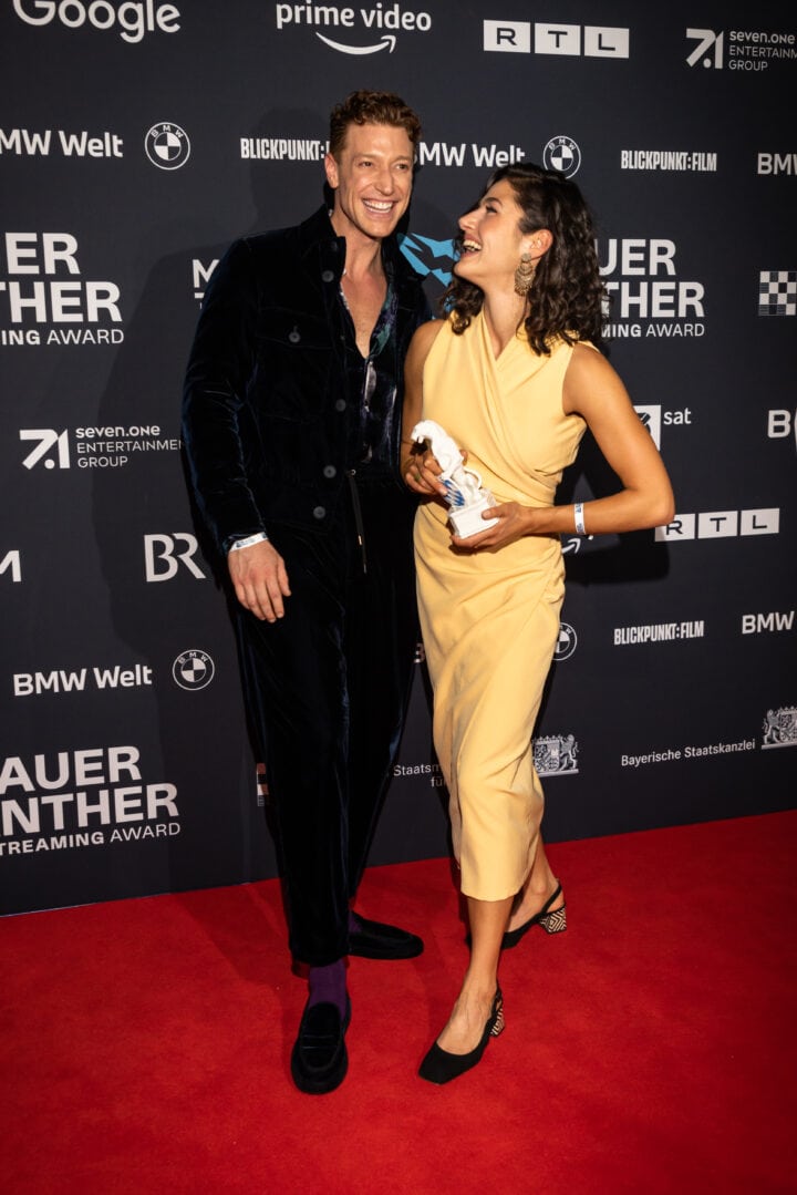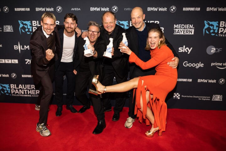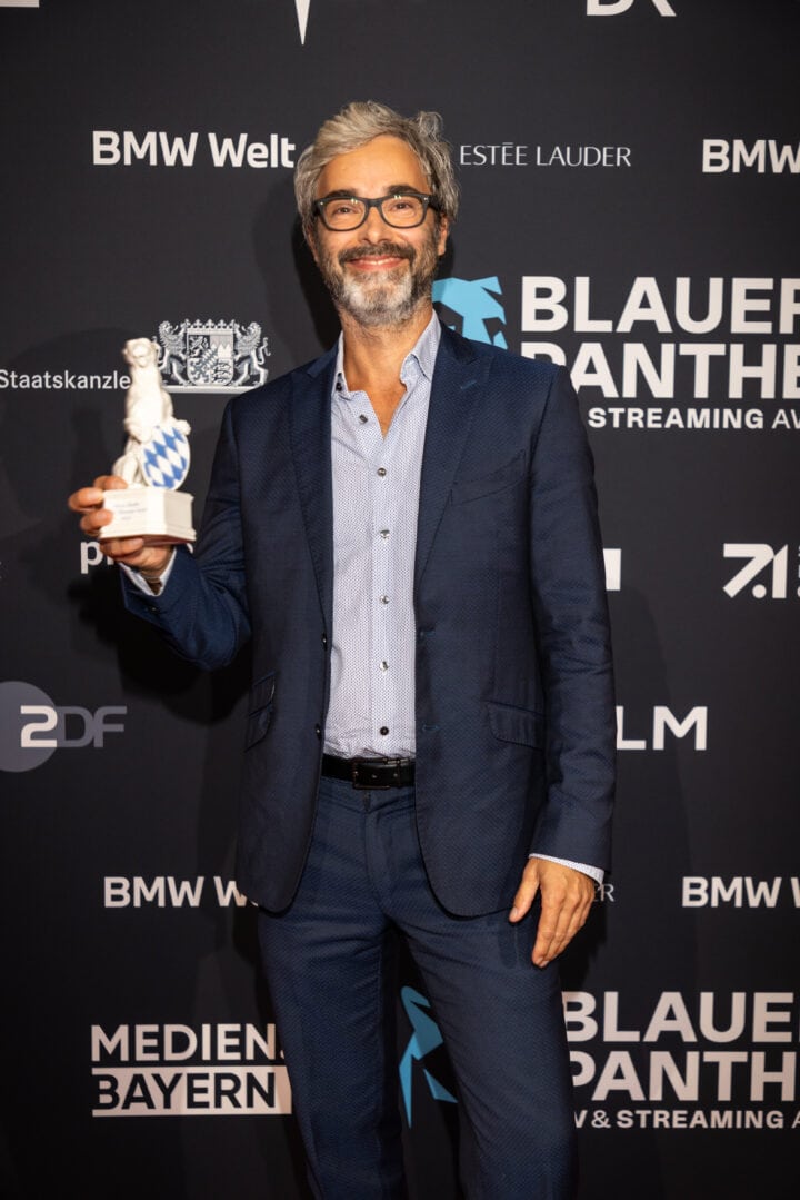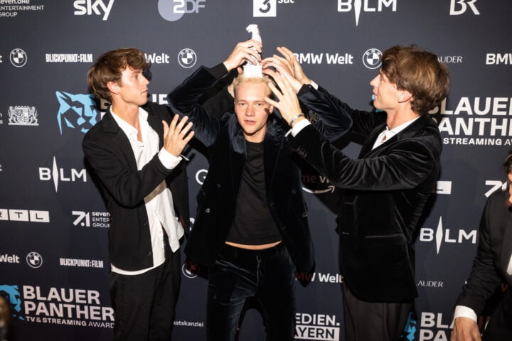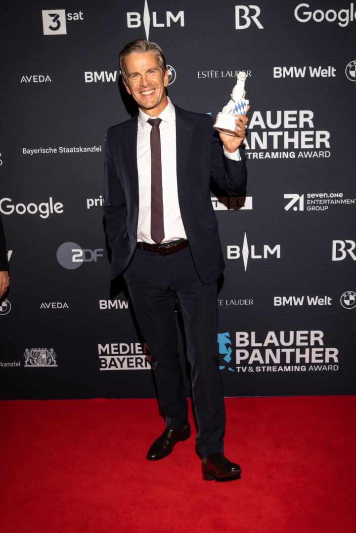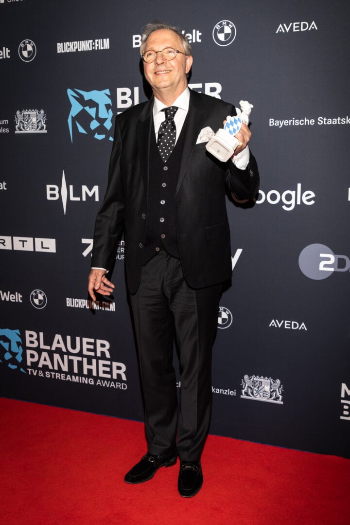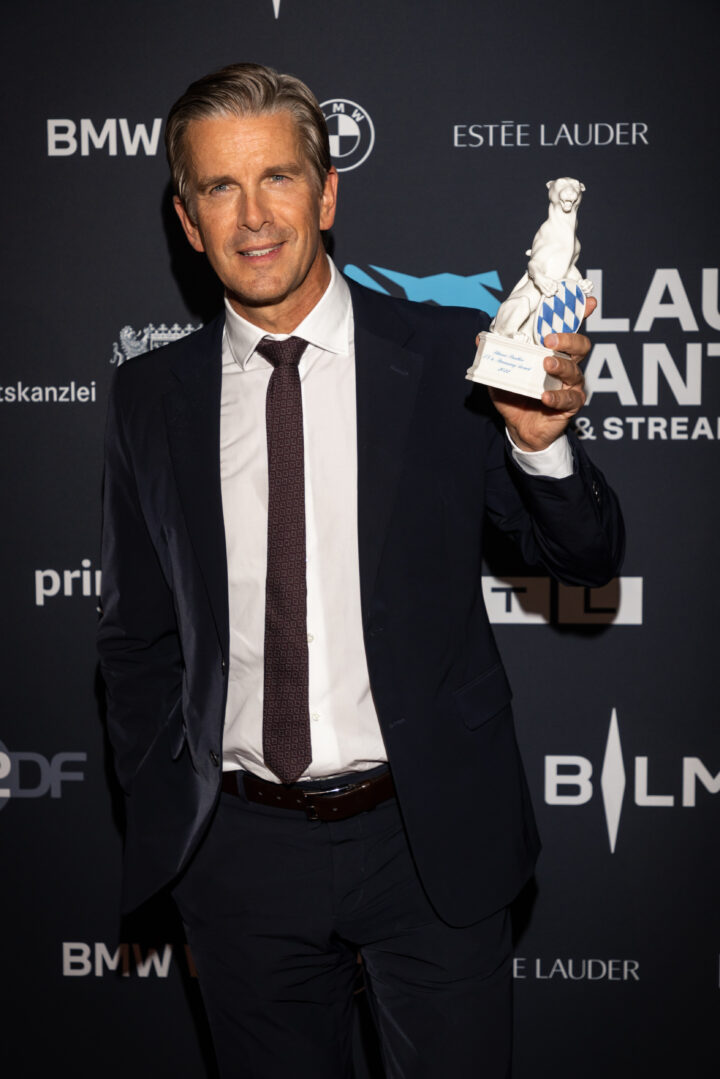 Markus Söder (Ministerpräsident), Judith Gerlach (Staatsministerin für Medien) und Preisträger, Blauer Panther - TV & Streaming Award 2022, BMW Welt, München, 19. Oktober 2022, Foto: Jens Hartmann für Medien.Bayern GmbH